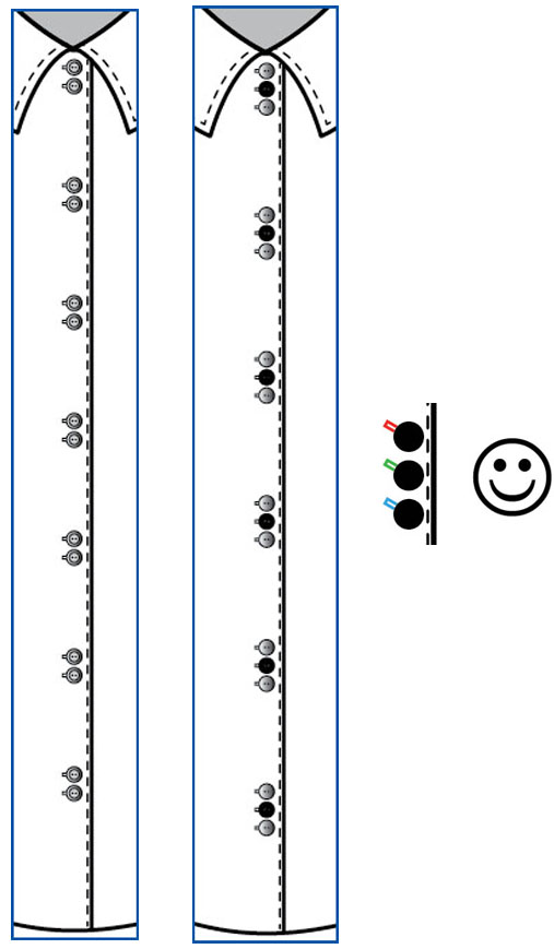 It is always better to depict buttonholes if you design a garment with button fasteners. You can draw only one button with a buttonhole in Adobe Illustrator, and then quickly create any number of buttons with buttonholes equidistant from each other.